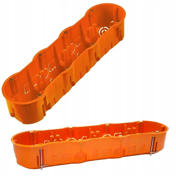 • Puszka instalacyjna poczwórna płytka wyposażona w łapki umożliwiające montaż puszek w płytach gipsowych.